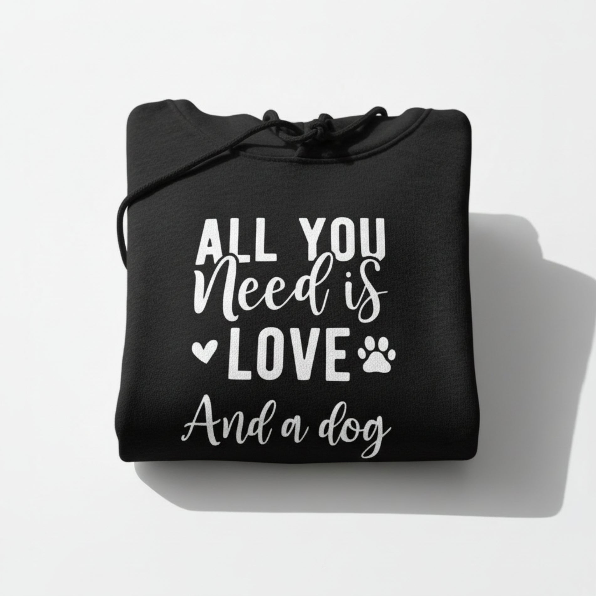 Wrap yourself in cozy comfort and pup-approved love with our “All You Need Is Love and a Dog” hoodie. 🐶❤️ The bold, playful lettering with a little paw print and heart makes this the perfect sweatshirt for dog walks, couch cuddles, and coffee runs with your favorite four-legged sidekick. Soft, snuggly fabric keeps you warm while your dog does the smiling and tail-wagging. 🐾✨ It’s great for everyday wear, dog park days, or matching family photos with your fur-baby. This hoodie also makes an adorable gift for any dog-loving friend or pet parent. 🎁💖 Wherever you go, let everyone know your love story starts with paws and a heartbeat.