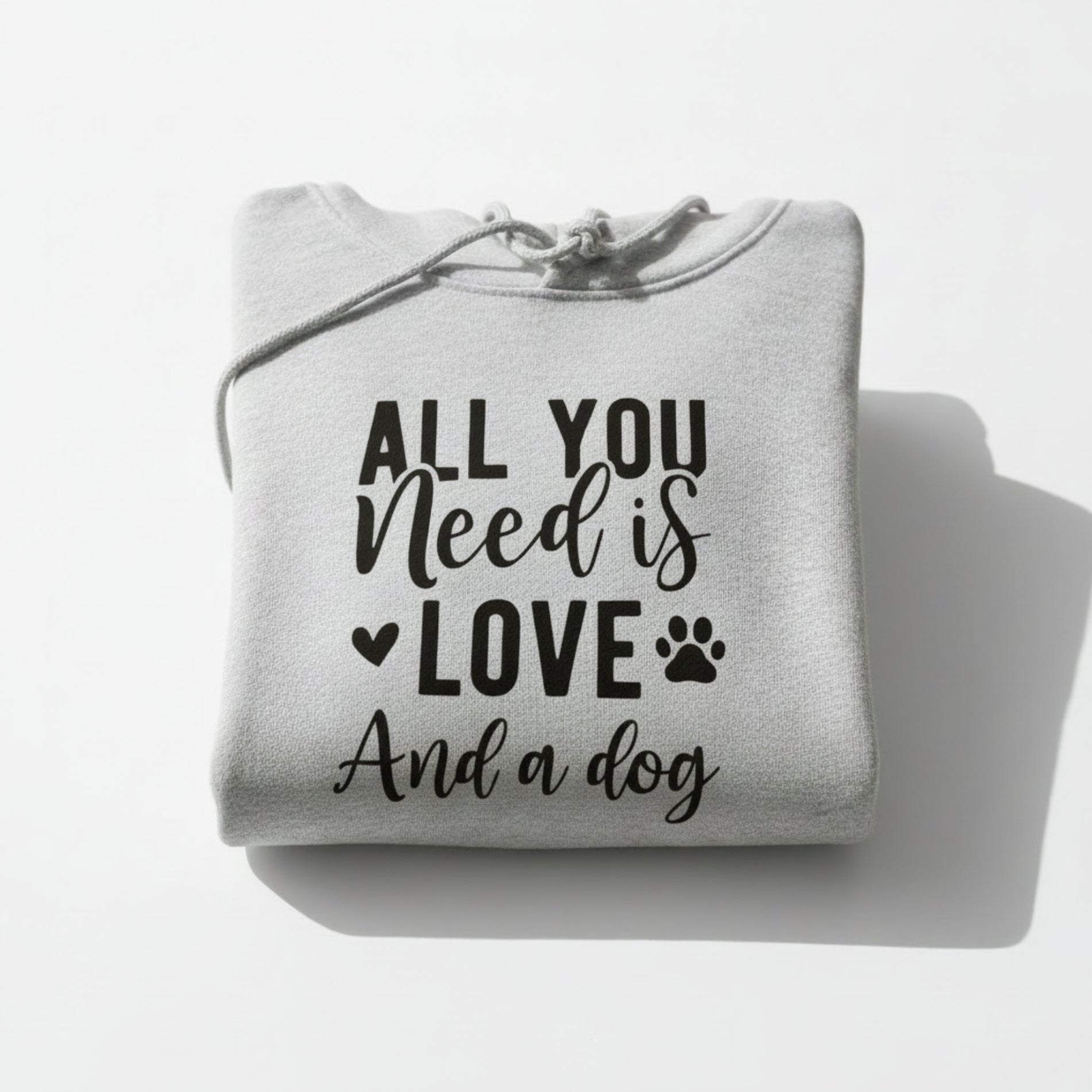 Wrap yourself in cozy comfort and pup-approved love with our “All You Need Is Love and a Dog” hoodie. 🐶❤️ The bold, playful lettering with a little paw print and heart makes this the perfect sweatshirt for dog walks, couch cuddles, and coffee runs with your favorite four-legged sidekick. Soft, snuggly fabric keeps you warm while your dog does the smiling and tail-wagging. 🐾✨ It’s great for everyday wear, dog park days, or matching family photos with your fur-baby. This hoodie also makes an adorable gift for any dog-loving friend or pet parent. 🎁💖 Wherever you go, let everyone know your love story starts with paws and a heartbeat.