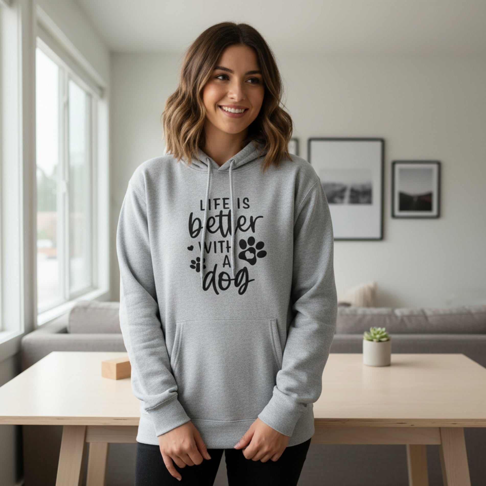 Our “Life Is Better With a Dog” hoodie is made from a soft, warm, medium-weight fleece blend that feels like a hug you can wear. It’s cozy enough for chilly mornings, durable enough for everyday wear, and perfect for long walks or snuggle sessions with your favorite pup.
