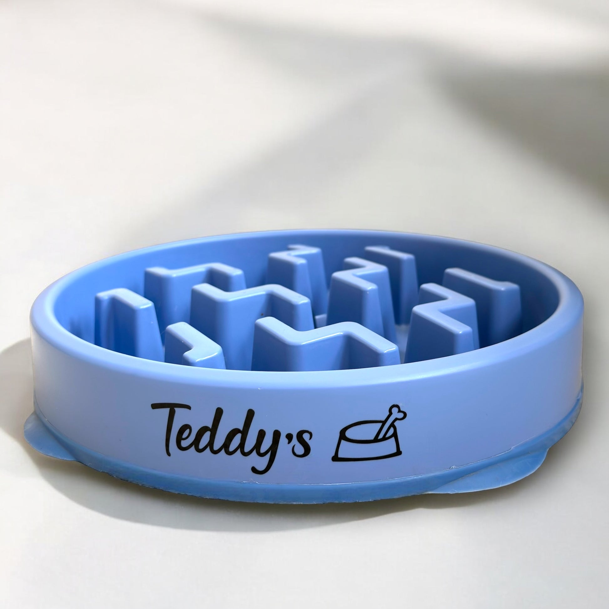 SloBowl Fun Feeders turn mealtime into a fun activity for your dog, who will enjoy navigating the maze-like patterns to reach their food. Designed to accommodate different eating styles, these bowls help prevent bloating and obesity by encouraging slower eating. Available for customization.