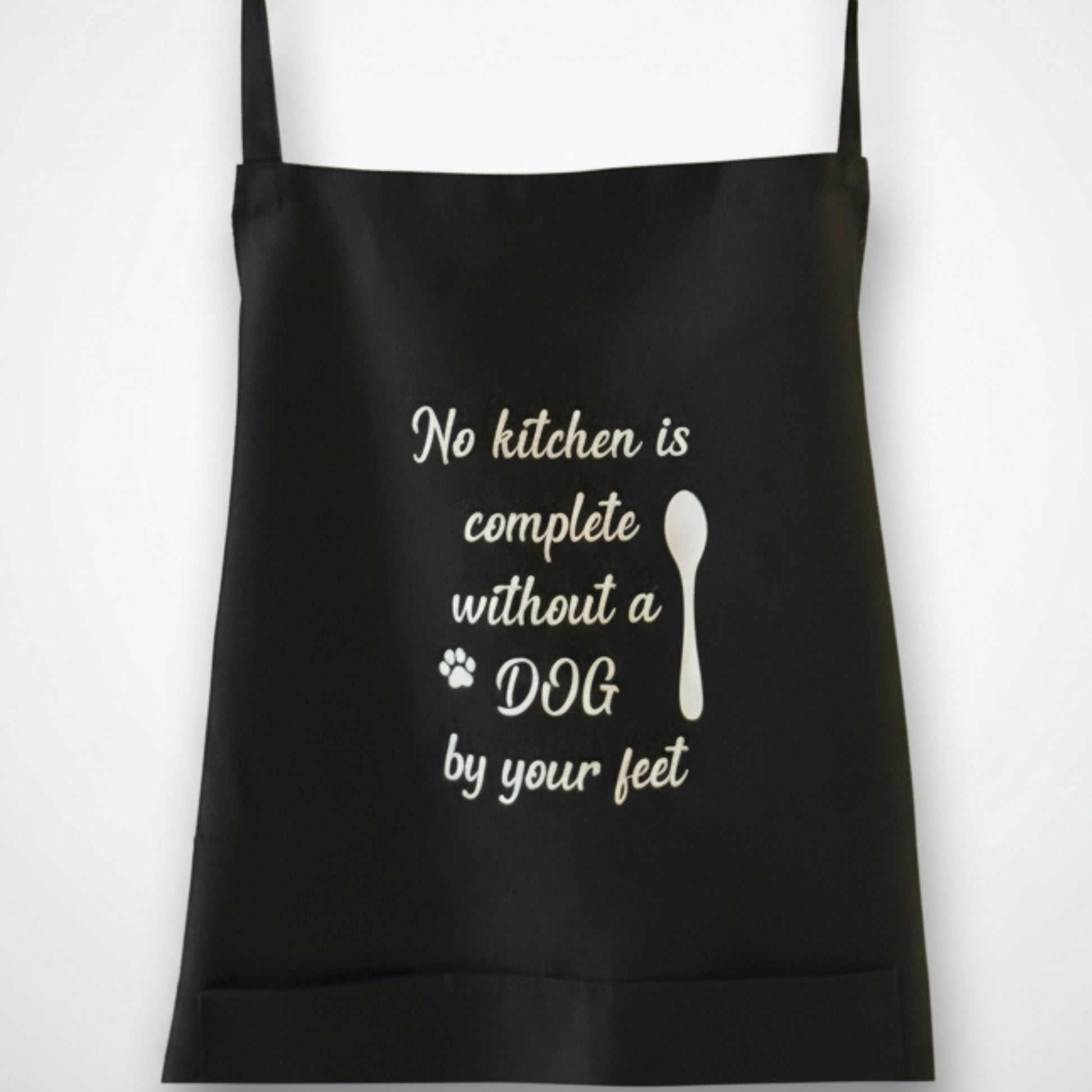 Bring extra love and charm into your kitchen with this adorable dog-lover apron! Featuring the playful quote “No kitchen is complete without a dog by your feet,” it’s the perfect accessory for anyone who loves cooking as much as they love their furry sous-chef.